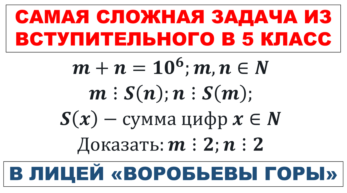 Разберём сегодня задачу из устной части вступительного экзамена по математике в 5 класс лицея "Воробьёвы горы" на Донской.