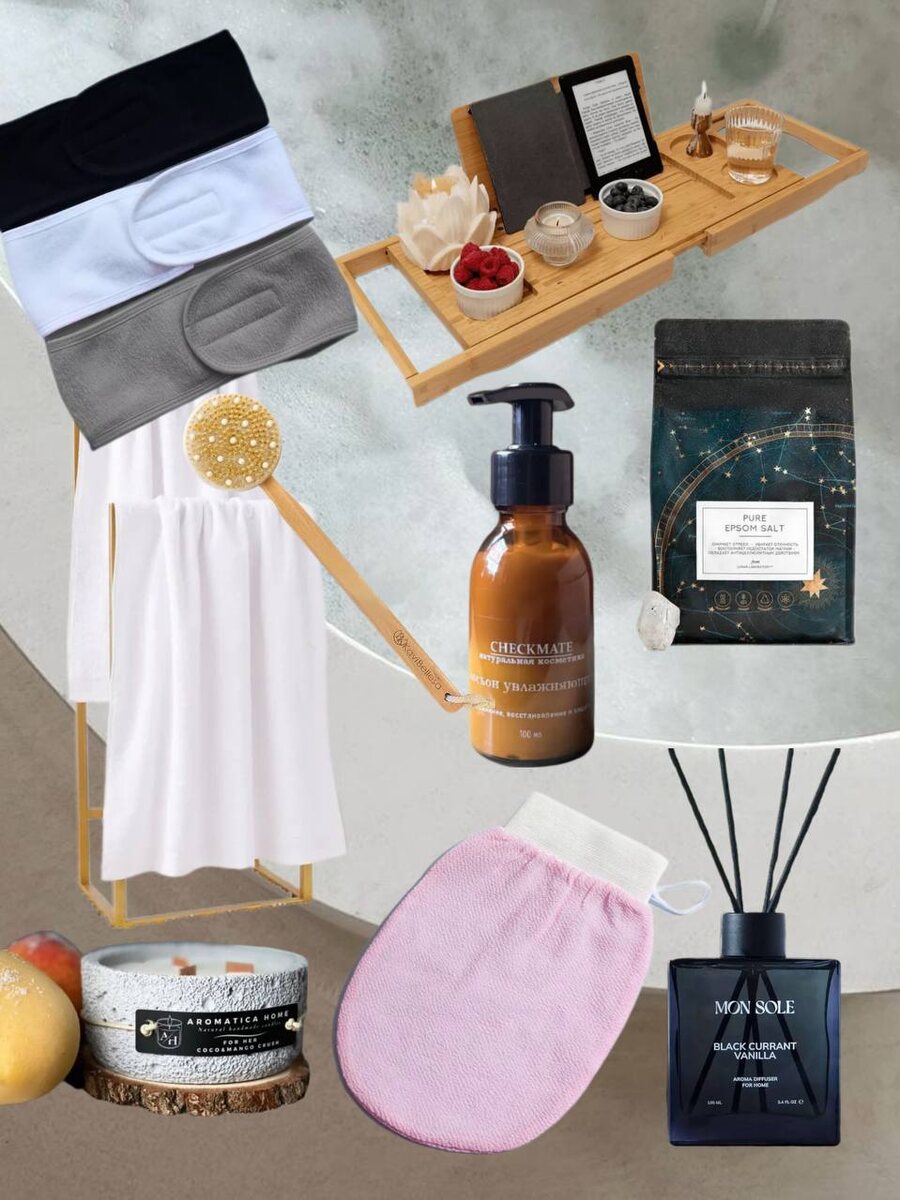 Ехууу! Пятница, дорогие мои! 🥳 Время забить на всё и предаться гедонизму! Выключаем телефоны, готовимся к выходным, зажигаем свечи, включаем приятную музыку, забиваем на уборку и бытовые дела и начинаем отдыхать. Чтобы ваш релакс был максимально полным, я подготовила для вас подборку товаров для идеального ничегонеделания. 1. Повязка на голову, 3 штуки. WB: 224666118 2. Столик для ванной WB: 11095173 – удобно поставить книгу и бокал вина 🍷 3. Махровые белые полотенца Ozon: 1539284588 4. Щетка для сухого массажа KaviBellesa Ozon: 940136860 5. Лосьон CHECKMATE "Сливочный кокос" Ozon: 1761107315 6. Английская соль Lunar Lab Ozon: 216637593 7. Свеча с деревянным фитилем "Кокос и манго" Ozon: 1770612005 – для создания атмосферы и романтического настроения или просто для красивой картинки в инсту.😜 8. Рукавичка Кесса Ozon: 635834119 9. Аромадиффузор Mon Sole "Black Currant Vanilla" Ozon: 1026514792 – пусть дома пахнет, как в спа-салоне! 🧘♀️ Всё, пошла релаксировать) 👋 #Подборкадлядом