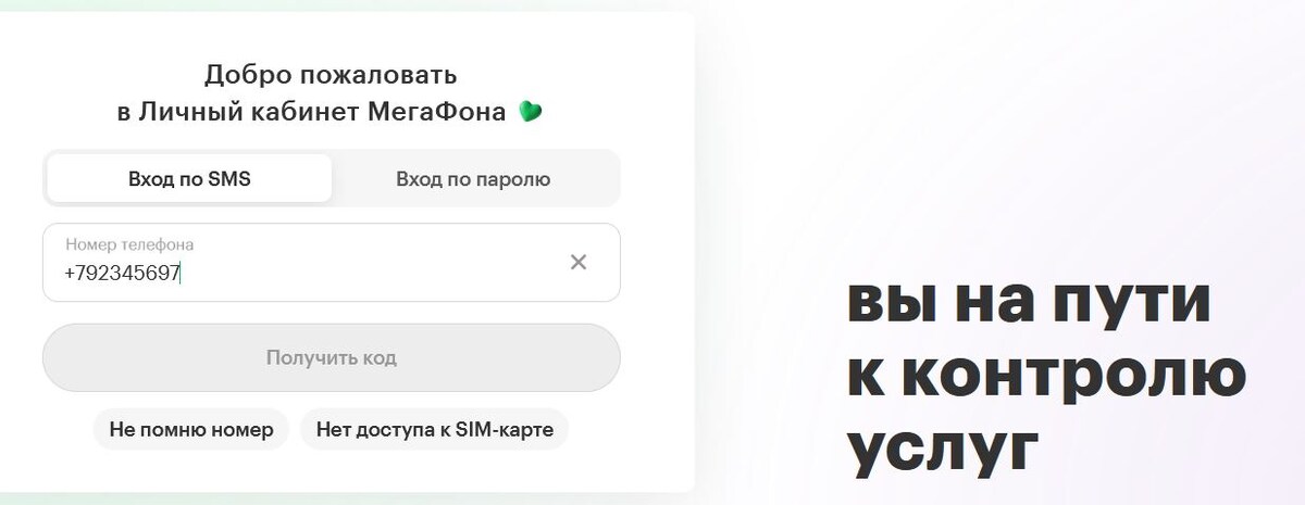 - Введите номер телефона и пароль для входа. Если у вас еще нет пароля, его можно получить через SMS.