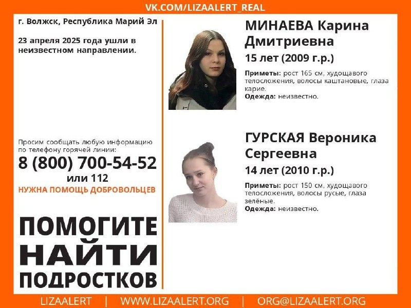 Если вы располагаете информацией об их местоположении, просьба незамедлительно сообщить об этом по телефону: 8 (800) 700 54 52 или 112.