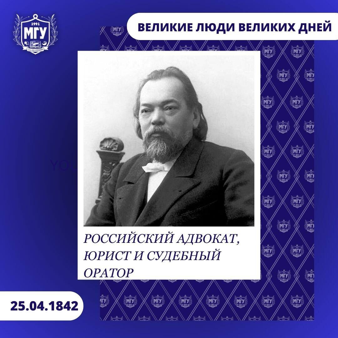 Сегодня мы вспоминаем гениального профессионала, родившегося 25 апреля 1842 года, чьи блестящие ораторские способности прославили его далеко за пределами Москвы. Попробуйте разгадать кто это! Был настолько великодушным и отзывчивым человеком, что выручал бедных людей бесплатно, нередко оплачивал непредвиденные расходы своих малообеспеченных клиентов. Мог точно и ловко за пару минут и с помощью нескольких слов выиграть самое безнадёжное дело. Будучи молодым и перспективным юристом, он проявил себя и как талантливый учёный. Занимаясь научной деятельностью, доказал, что молодость — не преграда для больших достижений. Имя этого признанного эксперта в своей области, — Плевако Фёдор Никифорович. «Без адвокатуры обойтись можно, без правды — нет!» - говорил Фёдор Никифорович, доказав этой лаконичной фразой, что правда — это то, в чём нуждаются всегда, и то, чего так не хватает. Автор рубрики: Анастасия Самсонова — студентка 1 курса специальности «Филология».