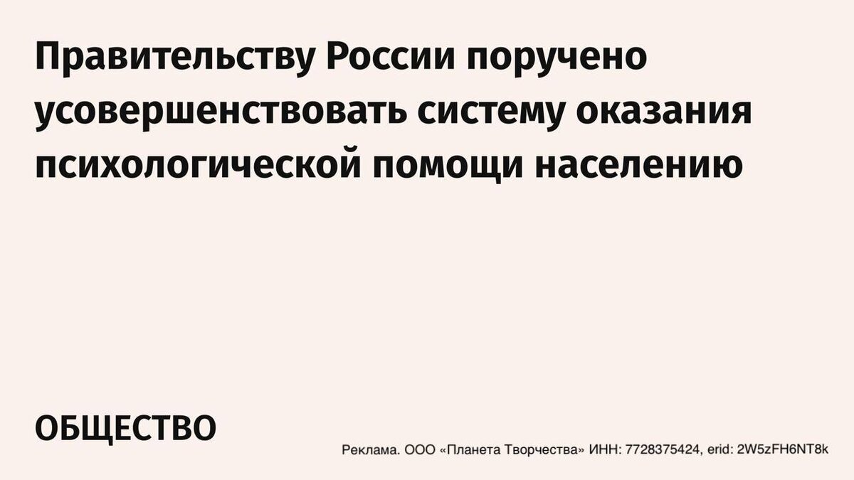Правительству России поручено усовершенствовать систему оказания психологической помощи населению