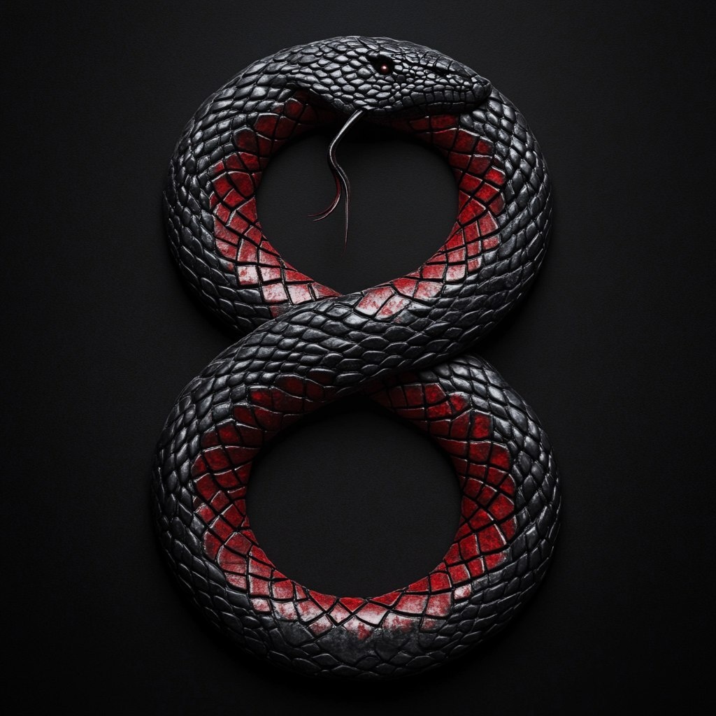Создано на основе запроса: ouroboros form an 8 simbol of infinity. The serpent is black and red orizzontal eating its tail. The background is black --- Автоперевод: Уроборос образуют 8 символ бесконечности. Как тебе такой вариант? 🤔 https://dzen.ru/id/65c0c65c86e4f837c27b24d7 #ИИ #AI #нейросеть #midjourney #art