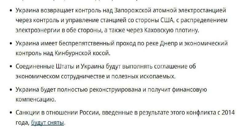 США предложили снять с России санкции. Такой пункт вошел в список мер по урегулированию на Украине, который Уиткофф представил на переговорах в Париже 17 апреля. Предполагается, что Россия и США будут сотрудничать в энергетике и промышленности.