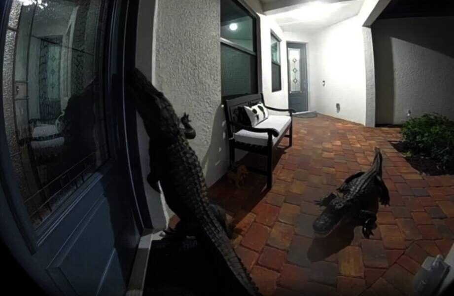 Представьте себе утро, когда вместо почтальона или соседа у вашей входной двери оказываются… два аллигатора! Именно такая необычная встреча произошла с жительницей местечка Аве Мария в американском штате Флорида. В целом американцы в некоторых штатах привыкли к встречам с этими хищниками: например, посмотрите, как однажды аллигатор решил поплавать в бассейне на надувном крокодиле. Однако в дверь они еще никогда не стучались.