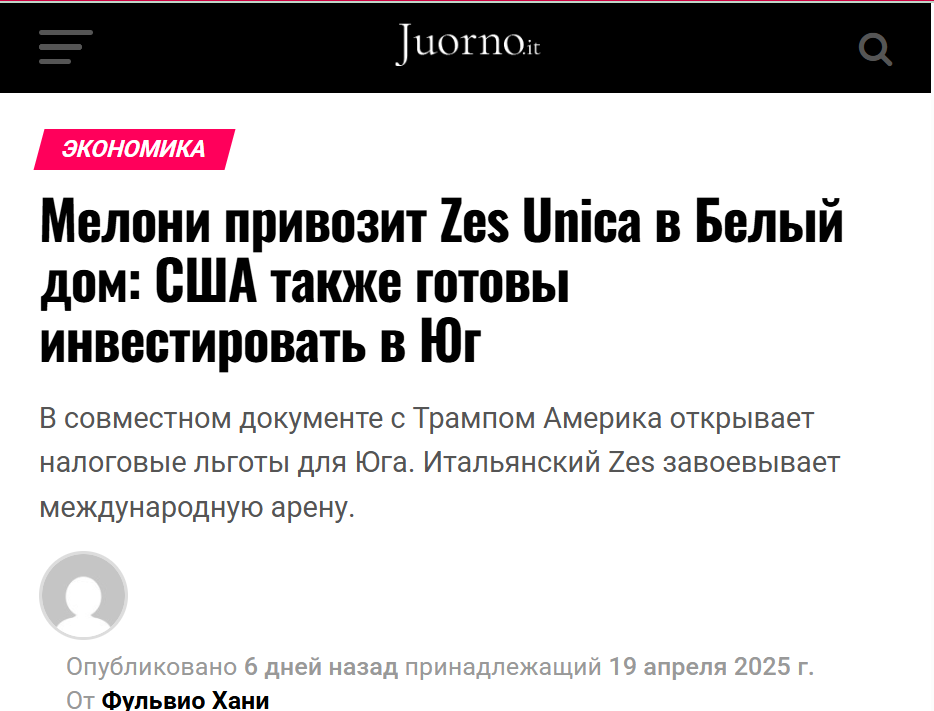 Недавний визит в Вашингтон премьер-министра Джорджии Мелони знаменует собой поворотный момент для Италии: не только на двустороннем уровне с Соединенными Штатами, но и в более широком контексте изменения мирового геополитического центра тяжести, все больше ориентирующегося на Юг и на новые трансконтинентальные альянсы. В центре диалога с Дональдом Трампом находится единая ZES — Особая экономическая зона, которая меняет продуктивное будущее Юга. Единая ZES, которая вступила в силу с 1 января 2024 года, представляет собой глубокую трансформацию итальянской промышленной политики. По настоятельной просьбе Раффаэле Фитто, бывшего министра по европейским делам, а ныне исполнительного вице-президента Европейской комиссии, ZES объединила восемь прежних зон (Абруццо, Базиликата, Калабрия, Кампания, Молизе, Апулия, Сицилия и Сардиния) в единую интегрированную платформу с целью устранения фрагментации и содействия инвестициям. У руля стоял Джози Романо, выбранный самим Фитто, который придал гон