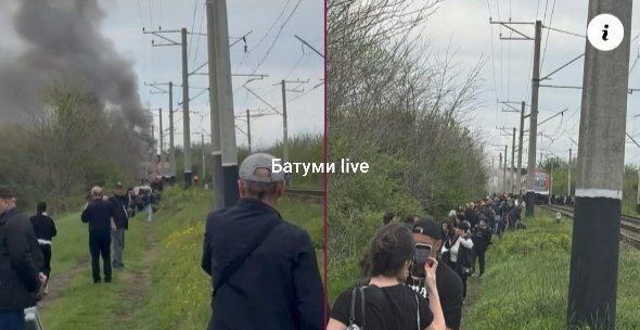 В поезде Озургети-Тбилиси произошел пожар. По словам пассажиров сначала отключилось электричество и поезд остановился, а через некоторое время заметили дым. Причина возгорания неизвестна.