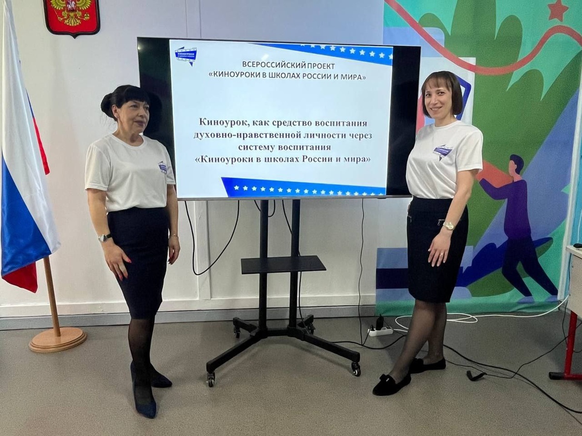 КИНОУРОК НА РОДИТЕЛЬСКОМ СОБРАНИИ Общешкольное родительское собрание на тему: «Киноурок, как средство воспитания духовно-нравственной личности через систему воспитания «Киноуроки в школах России и мира» состоялось в средней школе имени Полины Осипенко Хабаровского края 23 апреля 2025 года. Общешкольное родительское собрание провели: Анастасия Сергеевна Жукова – советник директора по вопросам воспитания, и Наталья Олеговна Варшавская, заместитель директора по воспитательной работе. Собрание открыла директор школы Вероника Михайловна Гузенко. Она представила задачи, которые успешно решаются через систему воспитания «Киноуроки в школах мира и России». Спикерами собрания были презентованы этапы проведения киноурока, качества, которые формируются у учащихся посредством просмотра фильмов и выполнения социальных практик. После совместного просмотра фильма «Мамины Сказки», ученики 8 «А» и ребята 9-го класса, организовали обсуждение качества рассматриваемое в фильме. Родители активно вклю