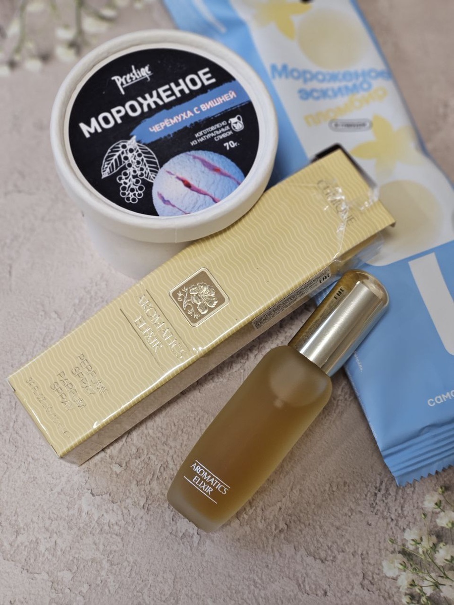 Заказала в Самокате мороженое, онигири и 10 мл Aromatic Elixir Clinique