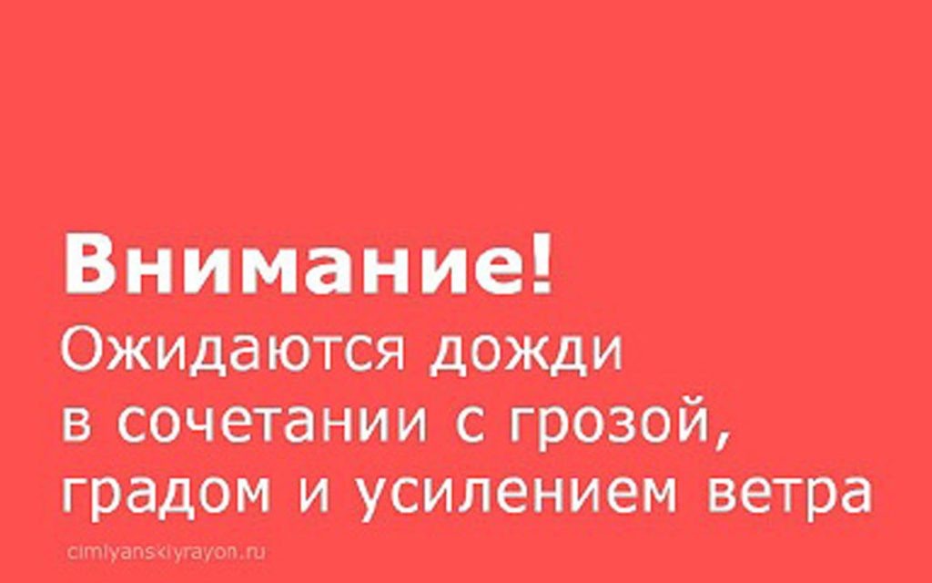 Ожидаются дожди в сочетании с грозой, градом и усилением ветра