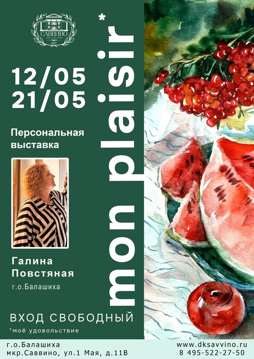 🎨С 12 по 21 мая в АРТ-пространстве "Саввино" (малое фойе) распахнет свои двери персональная художественная выставка "Mon plaisir" (моё