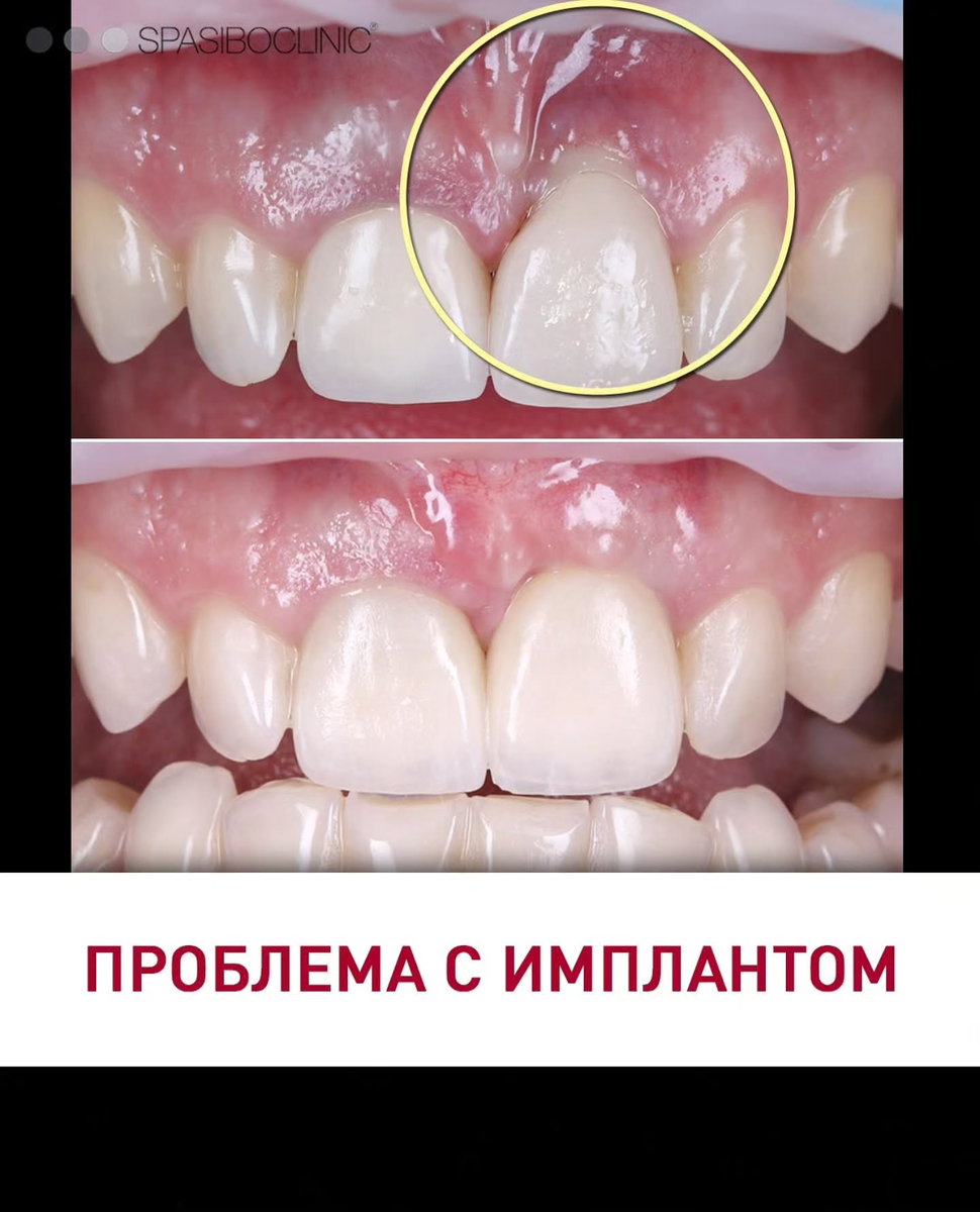 Дано: переимплантит. Имплантаты и комплектующие этой системы больше не выпускаются. +Тянущая уздечка верхней губы. +Глубокий прикус и стираемость нижних зубов.