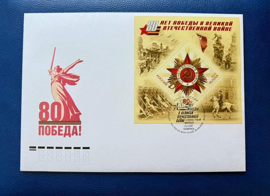 Российская Федерация и Республика Беларусь совместно выпустили марку, посвящённую 80-летию Победы в Великой Отечественной войне и оформленную в почтовый блок.