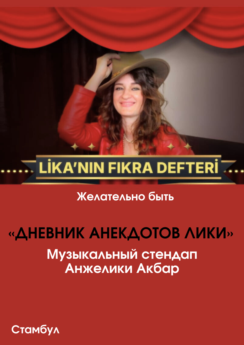 ✨ Юмор будет интеллигентный и добрый; рассказчик – с сияющими и радостными глазами; рояль – хорошо настроенный; а музыка – со всего света… Именно в такой атмосфере можно провести воскресный вечер 4 мая! Что скажете? Композитор, пианист, писатель Анжелика Акбар порадует нас премьерой: музыкально-юмористическим представлением «Дневник анекдотов Лики». Зрители музыкальных концертов Анжелики Акбар знают ее не только как прекрасного композитора и пианиста, но и как потрясающего рассказчика. Все ее концерты всегда сопровождаются лирическими вставками, рассказами, предвосхищающими музыкальные композиции. Близкие друзья и родственники знают Анжелику еще и как невероятно веселого и любящего найти что-то забавное в привычной скучной рутине, что-то удивительное в абсолютно обычном. Так было с детства... с того самого, когда она еще и имя свое выговаривать не умела (называла себя коротко Ликой). Но уже тогда она с легкостью запоминала семейные анекдоты и истории, а, став старше, с удоволь