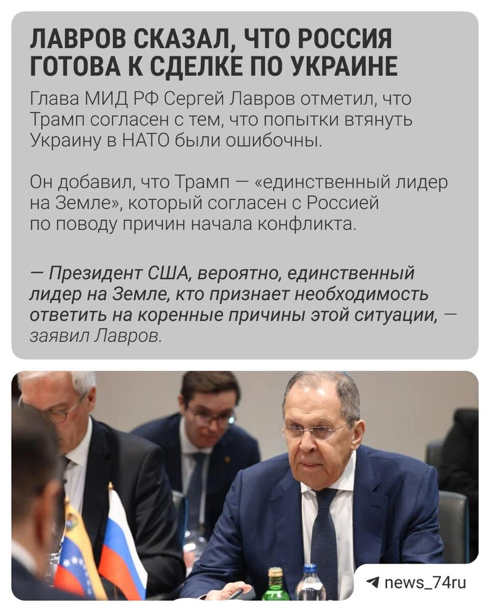 Глава МИД РФ Сергей Лавров заявил, что Россия готова к сделке по Украине Он ответил на вопросы по украинскому урегулированию в интервью американскому телеканалу CBS News. Собрали главные заявления ⬆️