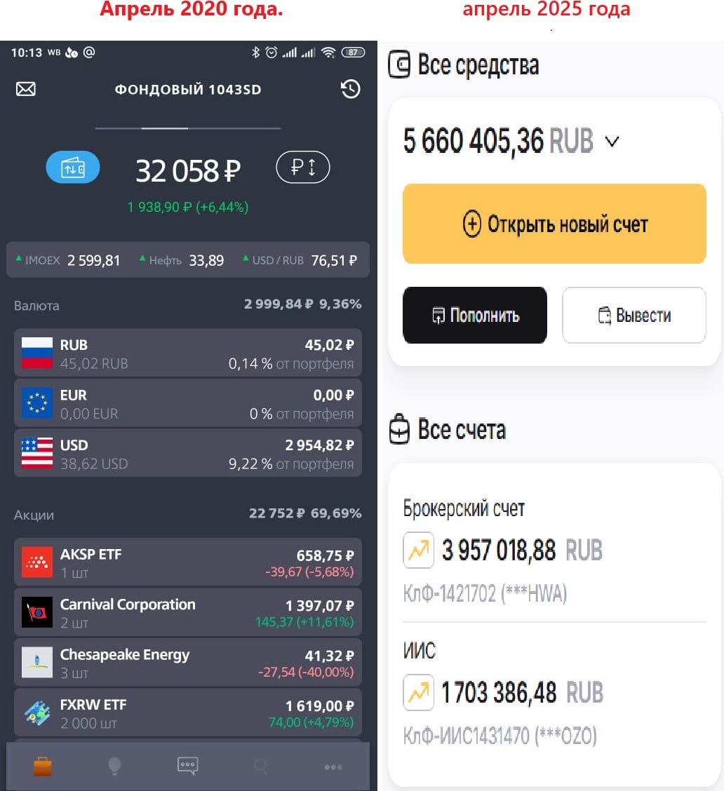 🚀 От 32 000 до 5 660 000 рублей за 5 лет! Сегодня уборка в телефоне обернулась ностальгическим путешествием в прошлое. Наткнулся на скриншот пятилетней давности – мои первые шаги на фондовом рынке. Тогда мой капитал составлял всего 32 000 рублей, и я радовался каждому плюсу в портфеле как ребенок! 😄 А сейчас, спустя 5 лет, сумма на счете выросла до 5 660 000 рублей! Это ли не доказательство силы инвестиций? 💪 Уверен, без грамотного вложения средств эти деньги давно бы растворились в повседневных тратах. Инвестиции – это не волшебная таблетка, но это мощный инструмент для достижения финансовых целей. Какие у вас истории инвестиционного успеха? Делитесь в комментариях! 👇 #инвестиции #фондовыйрынок #успех #финансы #мотивация