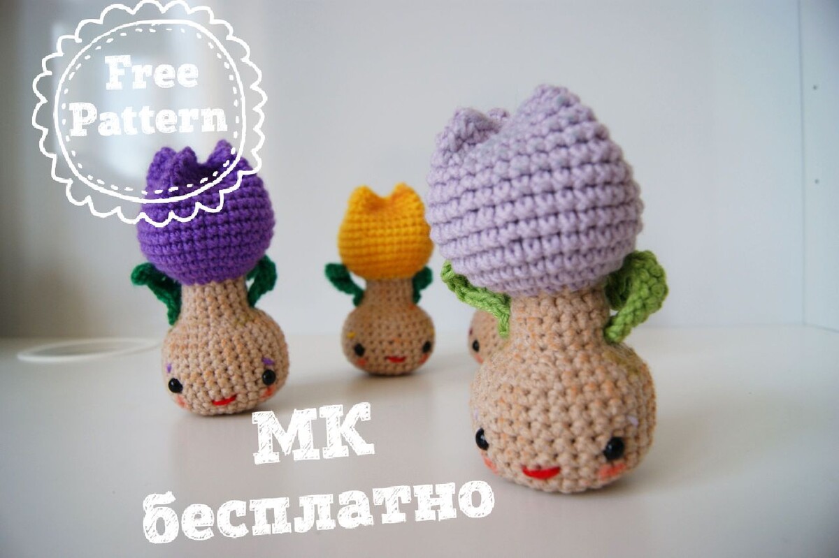 Бесплатное описание вязания Луковицы Тюльпана Есть ли что-то более весеннее, чем луковички тюльпана? Ну ладно-ладно, еще мимоза и гиацинт)) Предлагаю вам связать луковки тюльпана по моему бесплатному описанию✅🧶 Из ириса получаются ладошечные кнопки. Их можно и на булавку как брошь посадить и на швензу как сережки. Даже просто поставить для красоты возле монитора) Тюльпаны из ярнарт Джинс получаются приличного размера. Около 10 сантиметров в высоту. Такие луковицы я делаю с утяжелителем в виде стеклянного гранулята и поэтому их можно использовать как игольницы. Красиво и полезно. Подписывайтесь и следите за обновлениями❤️ На фото готовых работ, пожалуйста, отмечайте меня @lillk_art ✅ Это помогает развивать блог 💪 Больше интересного в моей группе ВК Подписывайтесь на мой канал и следите за обновлениями❤️