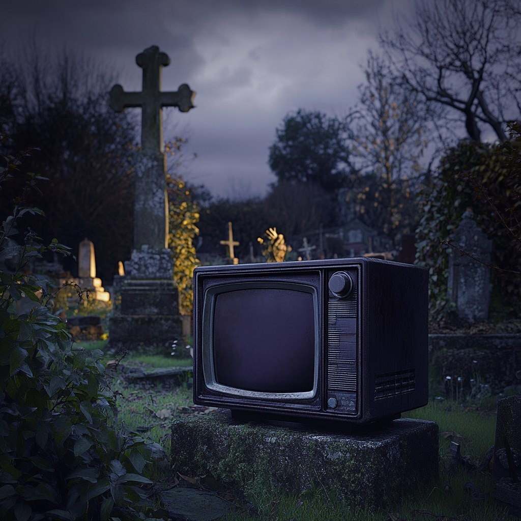 Создано на основе запроса: an old tv in graveyard. Photorealistic