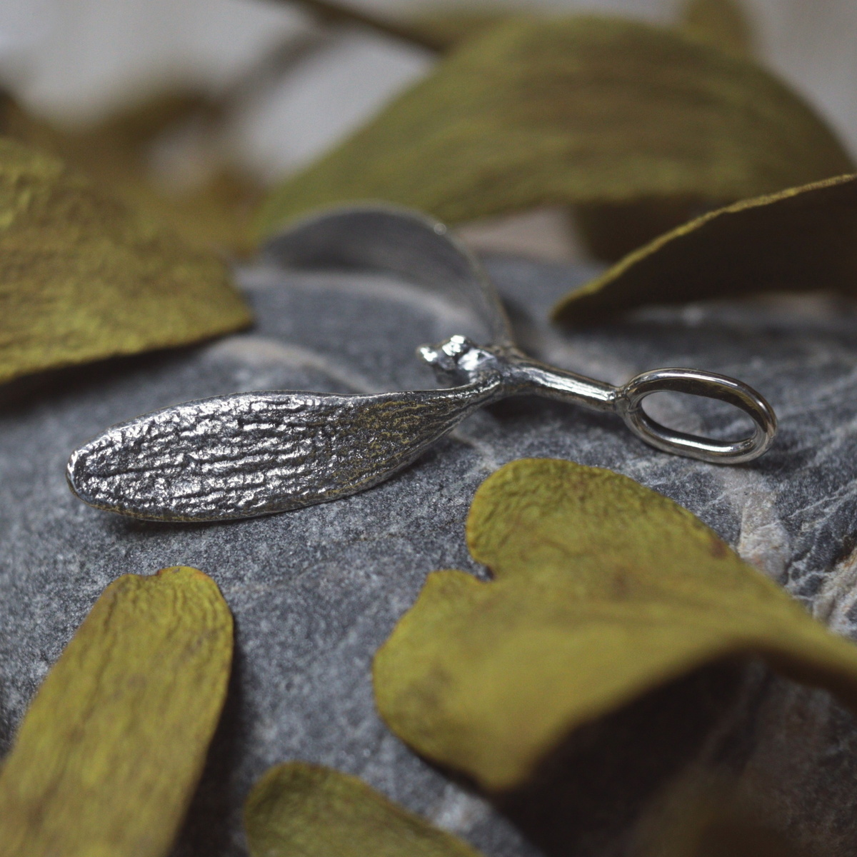 будет рядом и создаст особенное настроение, как в волшебном тихом лесу. Кулон скопирован с настоящей маленькой веточки омелы и отлит из серебра, поэтому повторяет все ее особенности: форму, размер, узоры на листьях,