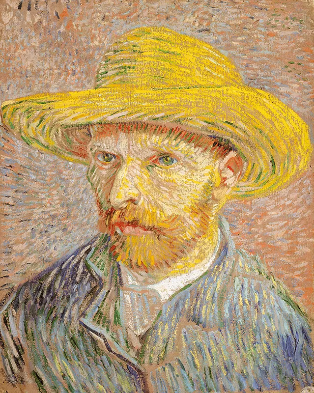 «Автопортрет в соломенной шляпе» Винсента (1887) груб и прямолинеен, но все компоненты на месте. Мазки кисти больше не случайны, а динамично направлены, как будто за всей композицией стоит гравитационное притяжение, подчиняющееся невидимому закону, вроде железных опилок, реагирующих на магнитное поле. Он также начинает развивать «цветовую гимнастику», основанную на его вере в то, что взаимодополняющие цвета соответствуют высшей идеальной форме земной любви, при этом каждый оттенок реализует свой потенциал через взаимодействие со своей противоположностью.