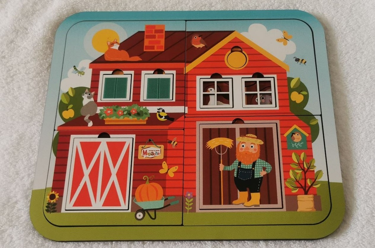 Ассортимент развивающих игрушек велик и многообразен. И одно из первых мест в игрушечном мире по праву принадлежит пазлам. Во время игры ребенок учится различать предметы по форме и цвету, считать их, знакомится с новыми словами. Занятие полезно для мелкой моторики, для тренировки памяти, внимательности, усидчивости. С какого возраста предлагать ребенку эту увлекательную игрушку? На что обратить внимание в первую очередь? Расскажу о своем опыте. Первый пазл из 25 деталей у нас появился около недели назад Дочери 3,2. Занятие для нас не новое. С полутора лет я покупаю ей сортеры, вкладыши, книжки-пазлы. Два, четыре, шесть элементов складывать научились. Набор выбирала, читая отзывы и советы мам. В процессе поиска обратила внимание на многослойные пазлы Mapacha. Мне понравились. Они такие, какими и должны быть детские игрушки. Прежде всего, экологичные. Наш пазл изготовлен из дерева и бумаги, никаких вредных и опасных добавок в нем нет Далее – безопасные. Каждая деталька пазла хорошо обра
