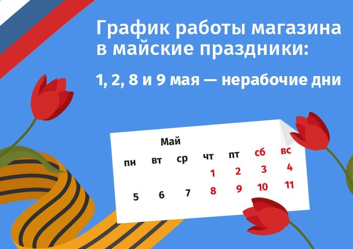 Скоро наступят майские праздники...время шашлыков, яркого солнца и отдыха! 😎 Пусть весна вдохновляет, труд радует, а победы будут не только в истории, но и в каждом вылеченном зубе! А теперь о графике работы нашего магазина: С 1 по 4, а также с 8 по 11 мая - нерабочие дни. Самовывоз и доставка не осуществляются. Сделать заказ на нашем сайте можно круглосуточно 24/7. Все заказы, оформленные в праздники, наши менеджеры обработают на следующий рабочий день - 5 мая и 12 мая, соответственно. Пожалуйста, спланируйте свои покупки заранее. И веселых вам праздников! К покупкам: aveldent.ru
