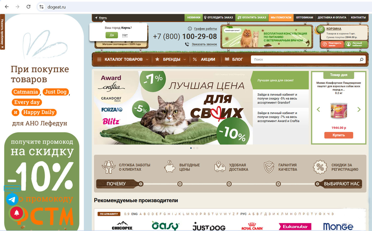 Ассортимент широкий, при этом магазин тщательно отбирает лучшие по соотношению цены и качества варианты, в этом его главный секрет успеха. И на самом деле это огромный плюс для покупателя: не нужно самостоятельно набивать шишки в поисках хороших кормов, витаминов, средств защиты от паразитов – магазин уже сам позаботился о своих покупателях, все проверил и выбрал лучшее.