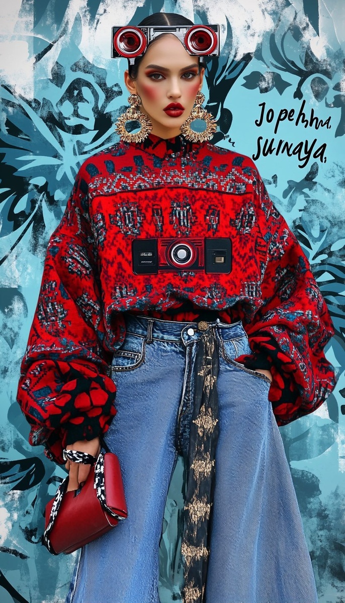 Создано на основе запроса: graphic poster style fashion campaign for streetwear, featuring one bold model in loud oversized clothes, cassette tape crown, "Jo pehna, wahi sunaya" in bold grunge Hindi typography, street-meets-heritage aesthetic, vibrant color splash --- Автоперевод: Графическая модная кампания в стиле плаката для уличной одежды, в которой представлена одна смелая модель в громкой негабаритной одежде, кассет-ленточной короне, «Джо Пехна, Вахи Сунайя» в жирном гранже-типографии хинди, эстетизирование улиц-зерни Как тебе изображение? 🤔 https://dzen.ru/id/65c0c65c86e4f837c27b24d7 #ИИ #AI #нейросеть #midjourney #art