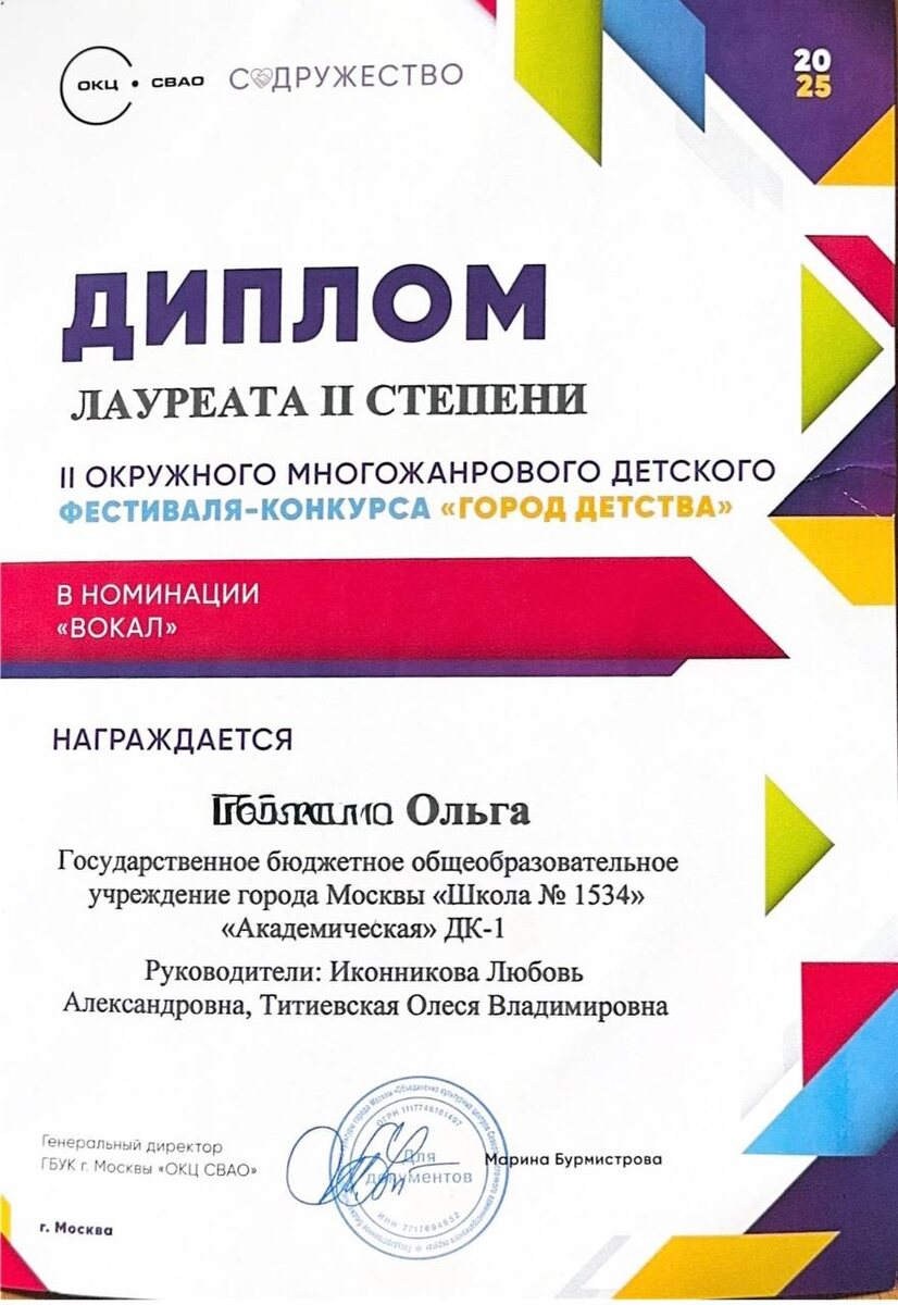 Город детства 🎊 Дошколята приняли участие в фестивале-конкурсе «Город детства»! 😊 На мероприятии наши маленькие таланты продемонстрировали свои способности и творчество в различных номинациях. 🎭 В номинации «Детский спектакль» ребята стали лауреатами II степени, показав великолепное выступление, полное эмоций и ярких моментов. 🎤 В номинации «Вокал» Ольга стала лауреатом II степени. Её потрясающий голос и артистизм покорили как жюри, так и зрителей! 💃🏼 Кроме того, в номинации «Хореография» наши танцоры также завоевали звание лауреатов II степени, продемонстрировав грацию и слаженность в своих выступлениях. 🎉 Поздравляем всех участников и их педагогов с замечательными достижениями! #школа1534 #таланты1534 #ТалантливыеДетиМосквы #донм #детскийсад1534