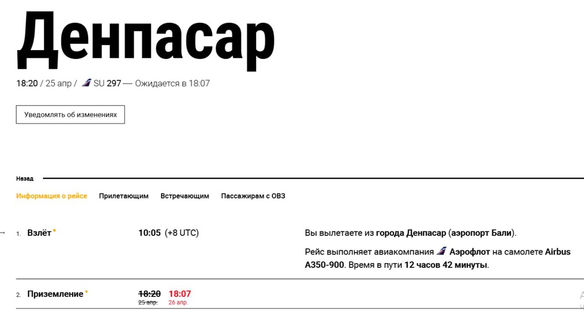 Туристы на острове Бали ждут резервного борта из Москвы. Рейс SU297 сегодня утром не смог вылететь в Россию по техническим причинам. Эту информацию Крыше ТурДома подтвердили в пресс-службе “Аэрофлота”. Самолет нацперевозчика ждут в Шереметьево на сутки позже первоначального графика. “Просидели в салоне 2 часа, говорили, что есть технические неполадки, которые пытаются решить. После этого всех вывели, начали выдавать багаж. Все это происходило часа три, так как его возили небольшими партиями на тележках. Сейчас нас заселили в отель в районе Куты - оплачен ужин и завтрак. Информацию о вылете мы узнаем только с сайта Шереметьево, представителя авиакомпании в аэропорту не было”, - рассказали Крыше ТурДома россияне с места событий. Подробнее написали на ТурДоме. @tourdom