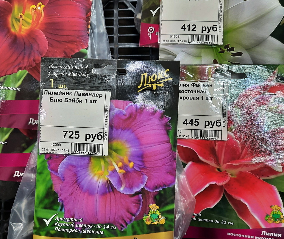 Он - это лилейник Лавендер Блу Бэйби (Lavender Blue Baby), купленный в магазине в феврале. Лилейник был уже проросшим: Валяясь в холодильнике, росток вытягивался - в марте пришлось посадить в горшок. Ну вот он и зацвёл, 24 апреля, на балконе: Похож ли цветок на то, что обещала заманчивая картинка на упаковке? Там, на картинке, конечно, совсем уж "лаванда", лилово-сиреневое чудо. Моё "чудо" вышло больше в розово-бордовый уклон. С другой стороны, бывают ли вообще лилейники холодных сиреневых тонов? Сомневаюсь. Видимо, это оно и есть. Лавендер-лаванда.