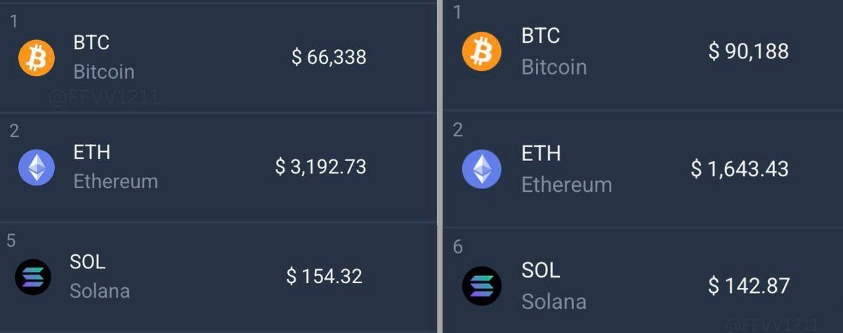 Год назад vs Сейчас Биткоин молодец, альткоины нет.