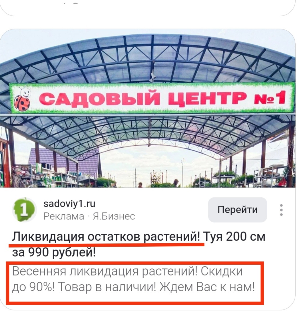 Здесь комментировать, только портить. И все же, что ж это за... Сон, как рукой сняло, когда в ленте новостей выплыло ЭТО. Твою ж дивизию! Эх! Им бы, молодым / креативным / успешным / продвинутым, мозгов бы чуток, цены бы не было. А так, получилось то, что получилось. Итак, вы и не знали, что : Сей момент, проходит флешмоб - "Ликвидация растений" в рамках "весенней ликвидации растений" . Не верите? Смотрите! Это ж прям, как из старого советского анекдота - мясо 3 сорт, рубить вместе с будкой. Нет-нет, что за акция вполне себе понятно. Те, кто зимовал абы как, достойного содержания не получил, а потому уже практически не жилец, тех под ликвидацию,но за денежку. С точки зрения торговцев - все ОК. А вот с другой стороны если посмотреть, то как? Формулировочка годится? Если товар то живой? Клише рекламное подходит? Очень стимулирует покупателя участие в "весенней ликвидации растений" . Очередной креатив поколение ЕГЭ замутило. И ведь так и не поймут болезные, что единая методичка не