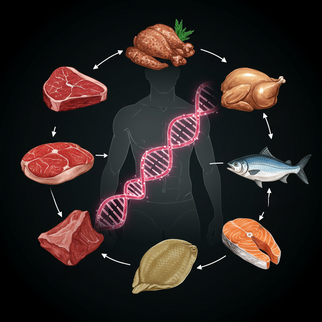 - Анализ того, как индивидуальные генетические полиморфизмы (однонуклеотидные полиморфизмы - SNPs) в ключевых метаболических и иммунных генах модулируют метаболические и клинические ответы на карнивор рацион.