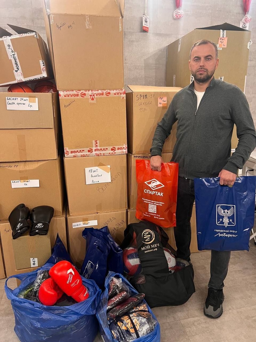 ⚽ От российской фабрики «Мой мяч» и РФСО «Спартак» он передал для воспитанников детских домов Луганской Народной Республики комплект футбольных и волейбольных мячей, а также памятные сувениры и подарки.