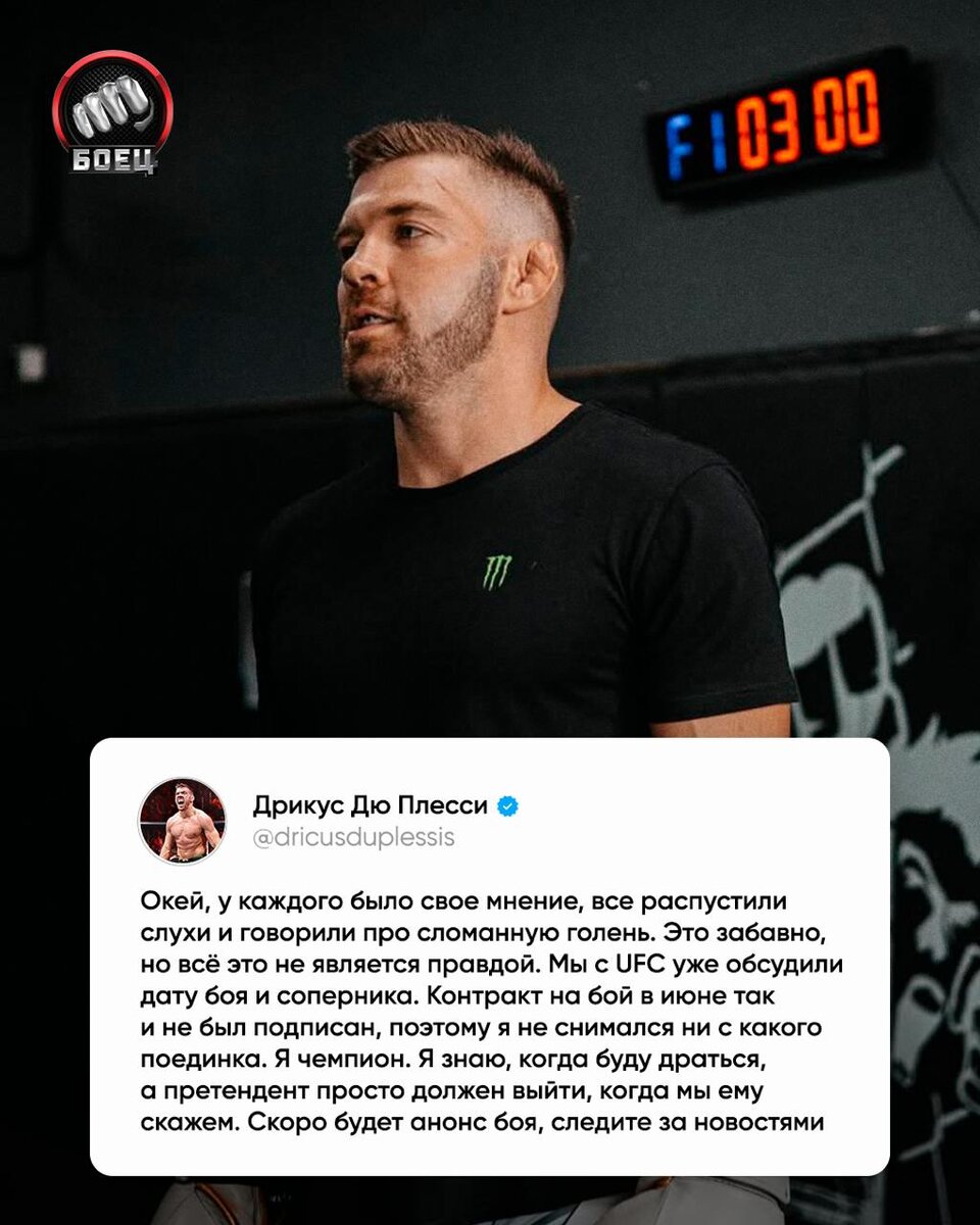 ДДП опроверг слухи о травме. Чемп готов драться ⚔ Дрикус наблюдал со стороны за тем, как обсуждают отмену его боя, на который он еще даже не подписал контракт 😏 Но скоро будет анонс. Ждем 🔥