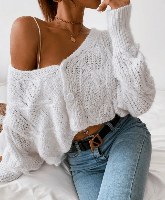 Не стоит забывать и про фасон укороченного кардигана. Он может быть как прямым, так и слегка приталенным. Рукава также могут быть разными: длинными, короткими или 3/4. Интересно смотрятся модели с рукавами-фонариками или рукавами-колоколами. Всё зависит от вашего воображения и желаемого образа.