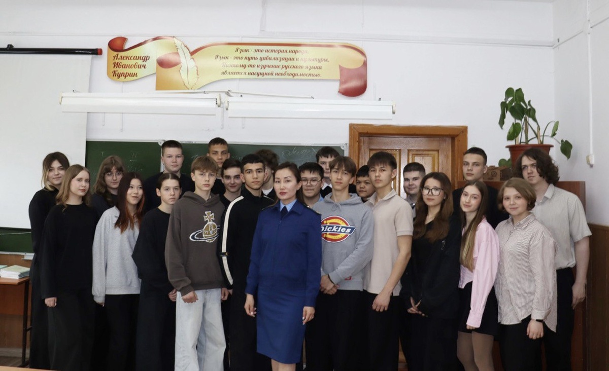 Помощник прокурора Республики Алтай Яна Туденева провела встречу с учениками лицея № 6 г. Горно-Алтайска на тему «Георгиевская лента – символ воинской славы»