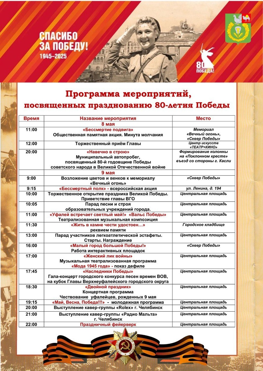 Друзья, представляем вашему вниманию полную афишу праздничных мероприятий, посвященных 9 мая и 80-летию Победы