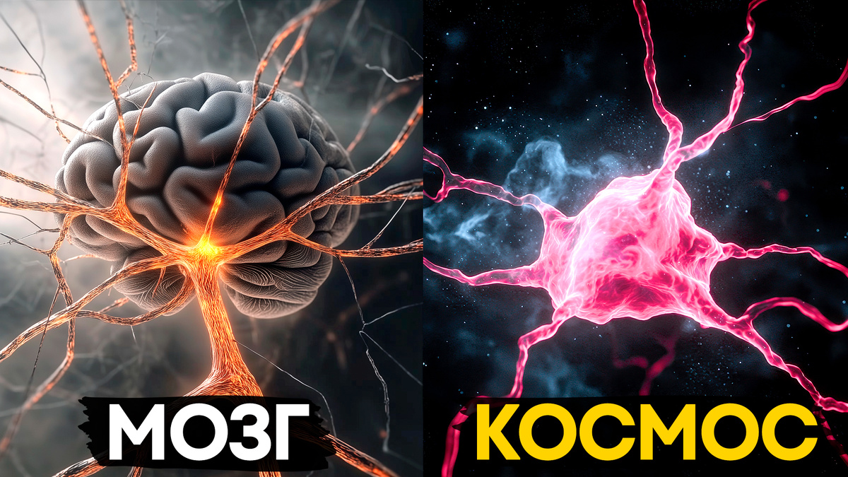 Сходство просто поразительное, согласитесь? Слева – нейронная сеть мозга, справа – космическая паутина, смоделированная компьютером. Это крупнейшая структура во вселенной, состоящая из галактик и тёмной материи. Нейроны и галактики образуют узлы, соединённые нитями. Информация в мозге передаётся через электрические сигналы, а во вселенной… возможно, через гравитационные взаимодействия?