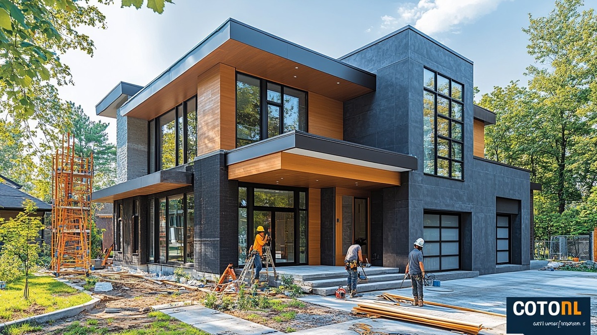 Создано на основе запроса: Exterior siding installation in progress on a modern suburban home, workers on scaffolding applying siding panels, tools and materials scattered around the worksite, realistic textures of vinyl and fiber cement siding, natural daylight, candid construction scene, realistic colors and lighting, unpolished look --- Автоперевод: Установка наружного сайдинга в современном пригородном доме, рабочие на лесах, применяющие сайдинги, инструменты и материалы, разбросанные по рабочим места Как тебе изображение? 🤔 https://dzen.ru/id/65c0c65c86e4f837c27b24d7 #ИИ #AI #нейросеть #midjourney #art