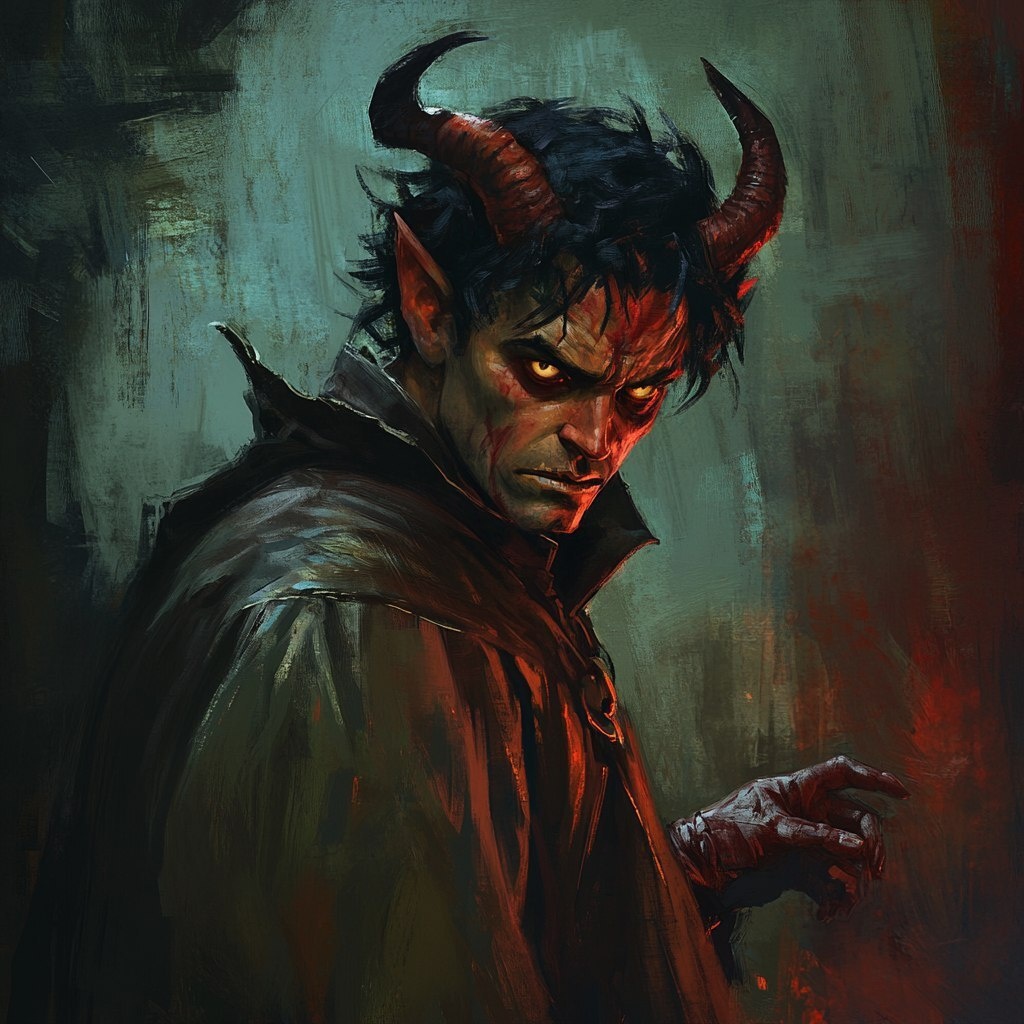 Создано на основе запроса: D&D character concept art, a skiddish red-skinned tiefling nightcrawler with horns and dark hair, wide demon eyes, looking over his shoulder, wearing worn-out robes, with a detailed background, hands glowing black magic, disheveled and scared, a fantasy illustration digital painting in the style of Greg Rutkowski --- Автоперевод: D & D персонаж Концепт-арт, скидский ночной тифлинг с красной кожей с рогами и темными волосами, широкие демонные глаза, глядя через плечо, в изношенных одеждах, с подробным фоном, руками, светящимися черной магией, растрепанной и напуганной, фэнтезийной цифровой живопись Как тебе такая картинка? 🤔 https://dzen.ru/id/65c0c65c86e4f837c27b24d7 #ИИ #AI #нейросеть #midjourney #art