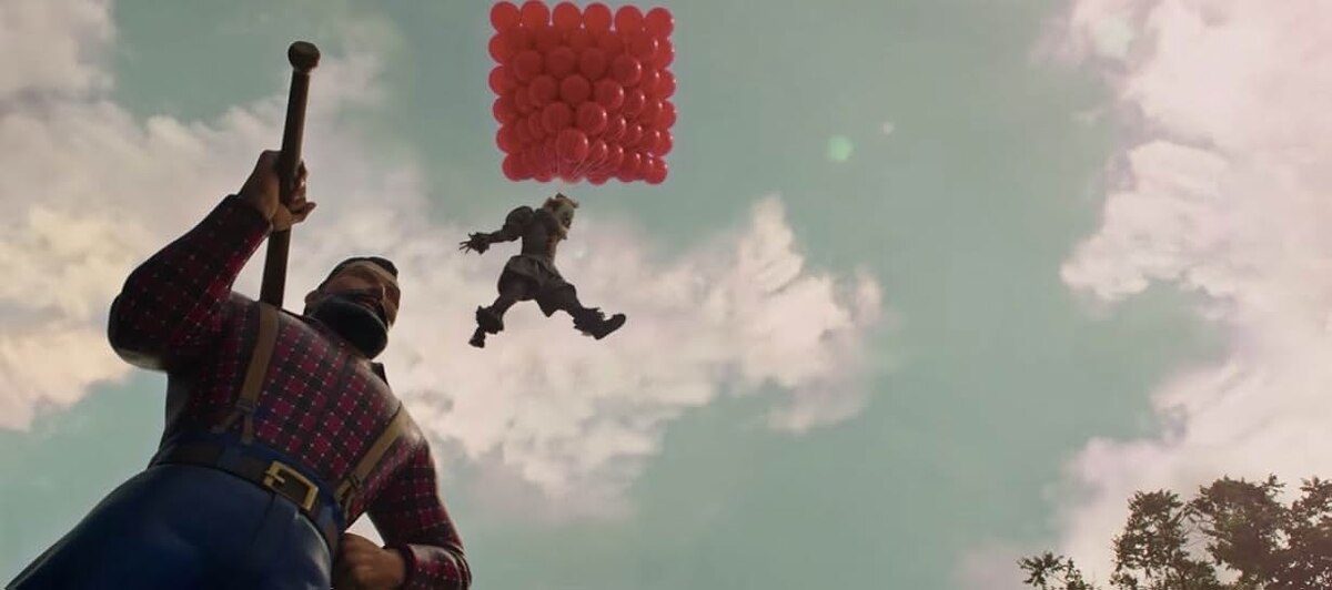 Статуя говорит с Ричи как похабная версия великана из «Джека и бобового стебля»: «Если не вернёшь мою курицу, арфу и мешки с золотом, я тебя, блядь, сожру!» Затем заносит топор. В 20 абзацах, описывающих атаку, Кинг радикально переработал язык: действия переданы короткими предложениями (ускорение темпа).