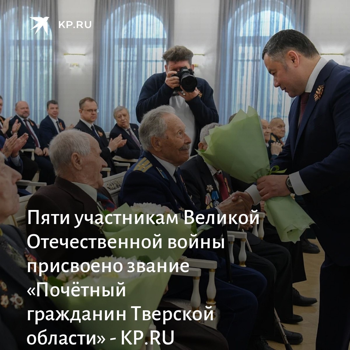 25 апреля в областном правительстве в Твери в преддверии 80-летия Великой Победы губернатор Игорь Руденя вручил награды участникам Великой Отечественной войны и СВО. По поручению Президента РФ по всей стране проводится работа по присвоению фронтовикам званий почётных граждан областей, городов и муниципальных образований. Сегодня звание «Почётный гражданин Тверской области» было присвоено пяти участникам Великой Отечественной войны. ✏️ «КП»-Тверь» | Подписывайтесь