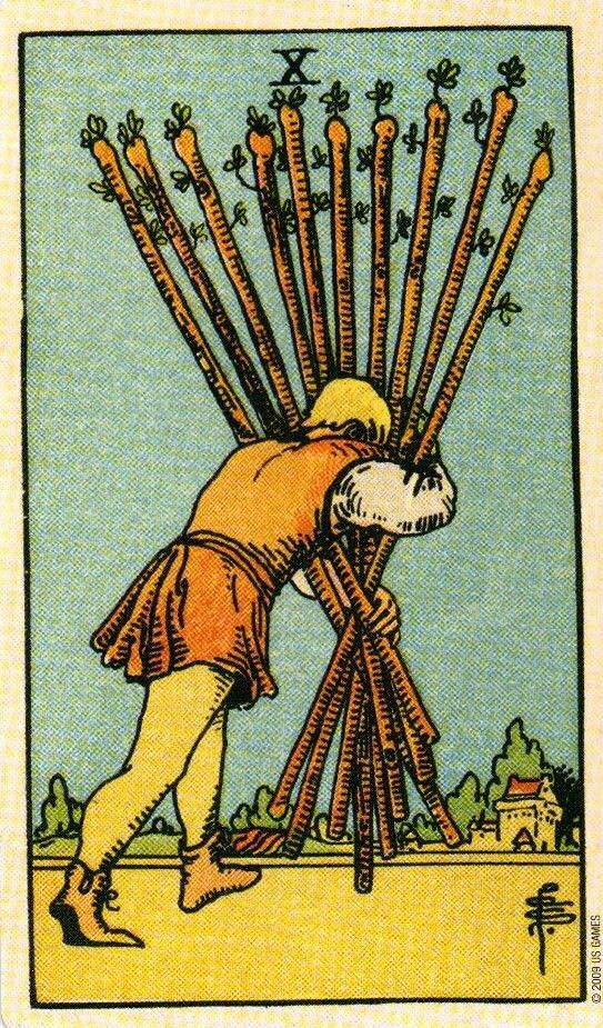 Значение Аркана Десятка Жезлов в колоде Таро Райдера Уэйта Смит