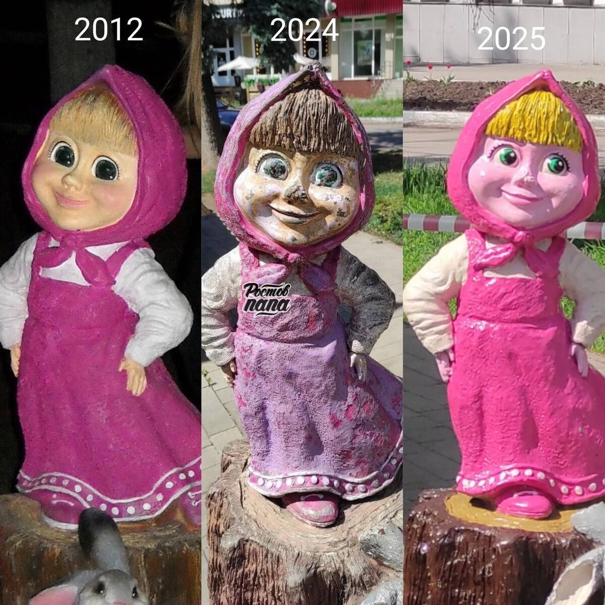 Из блога Гуково. Там всегда интересно 😎 У меня две новости: хорошая и смешная. 1. Машу и медведя покрасили. Наконец-то. 2. У Маши кажется аллергия на краску.🤭 👉🏻Новости №1 в Ростове 💌Прислать новость/фото