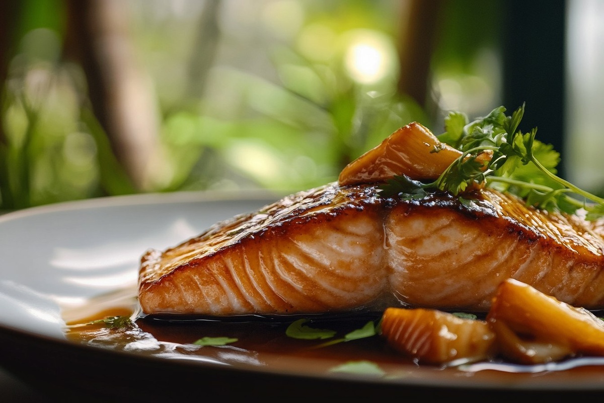 Создано на основе запроса: Title: Honey Garlic Glazed Salmon | STYLE: Close-up Shot right view | EMOTION: realistic as possible | SCENE