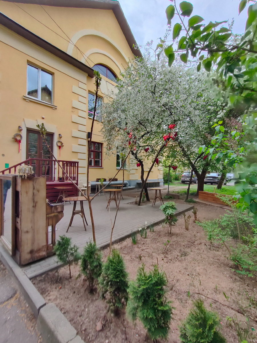 Мы живём рядом с этим районом, поэтому он первым попал в прогулку. Тихий район двухэтажных домиков был первым элитный микрорайоном послевоенного Минска. Построен в 1945–1949 годах пленными немцами по проекту архитектора Осмоловского, как не трудно догадаться, отсюда и название. В принципе это практически самый центр - под боком у Театра оперы и балета, Троицкого предместья. Не удивительно, что сейчас многим его очень хочется "освоить". А ещё сейчас здесь очень много кофеен. В одну из них - Маркс зашли. Прикольный интерьер с книгами. Кофе и пирожное были вкусными.