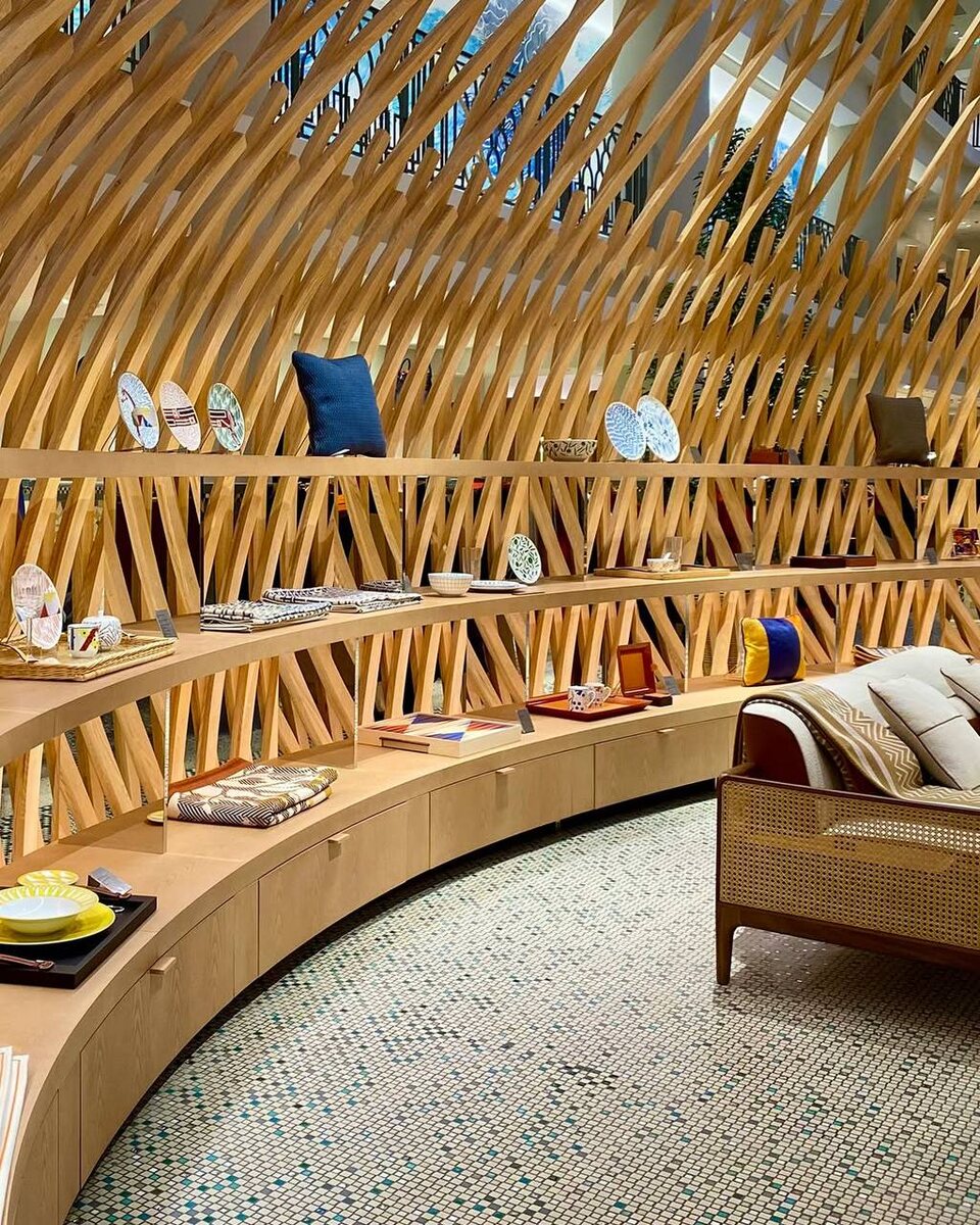 Бутик Hermes на улице Rue de Sèvres в Париже расположен в историческом здании, построенном в 1935 году архитектором Люсьеном Беге. Изначально здесь располагался бассейн отеля Lutetia, который позднее был переоборудован в торговую площадку с большими деревянными конструкциями, напоминающими хижины. Они придают пространству особую теплоту и уютную атмосферу. Примечательно, что пол бутика отделан итальянской мозаикой от TREND Group, которая доступна для заказа в #DUSHLUX! Мы знаем, как сделать Вашу ванную комнату особенной! Подробнее на www.dushlux.ru