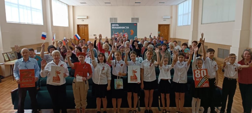 Председатели первичных ветеранских организаций Тимашевского железнодорожного узла в преддверии 80-летия Великой Победы над фашистской Германией провели в актовом зале локомотивного депо мероприятие для ветеранов. В нем приняли участие зампредседателя Тимашевского райсовета ветеранов Е. Перелыгина, ветераны ж/д узла, воспитанники детсада № 22 РЖД, ученики 5-го класса СОШ № 19, вокальный ансамбль МРДК «Синяя птица» (рук. Т. Бобер). Проведение в России в 2025-м Года защитника Отечества и Года железнодорожной славы — отличная возможность еще раз напомнить о подвигах земляков. В Тимашевском районе 11 Героев Советского Союза, трое из них учились в школе № 19 (бывшая железнодорожная № 53). Это И.Ф. Котляр (он работал в ШЧ-9), А.М. Степанов, В.К. Бойченко. Председатели ветеранских организаций вручили всем присутствующим Георгиевскую ленту, звучала под патефон музыка военных лет. Был оформлен плакат о Тимашевском бронепоезде «Смерть немецким оккупантам». Ребята из детского сада выставили свои р